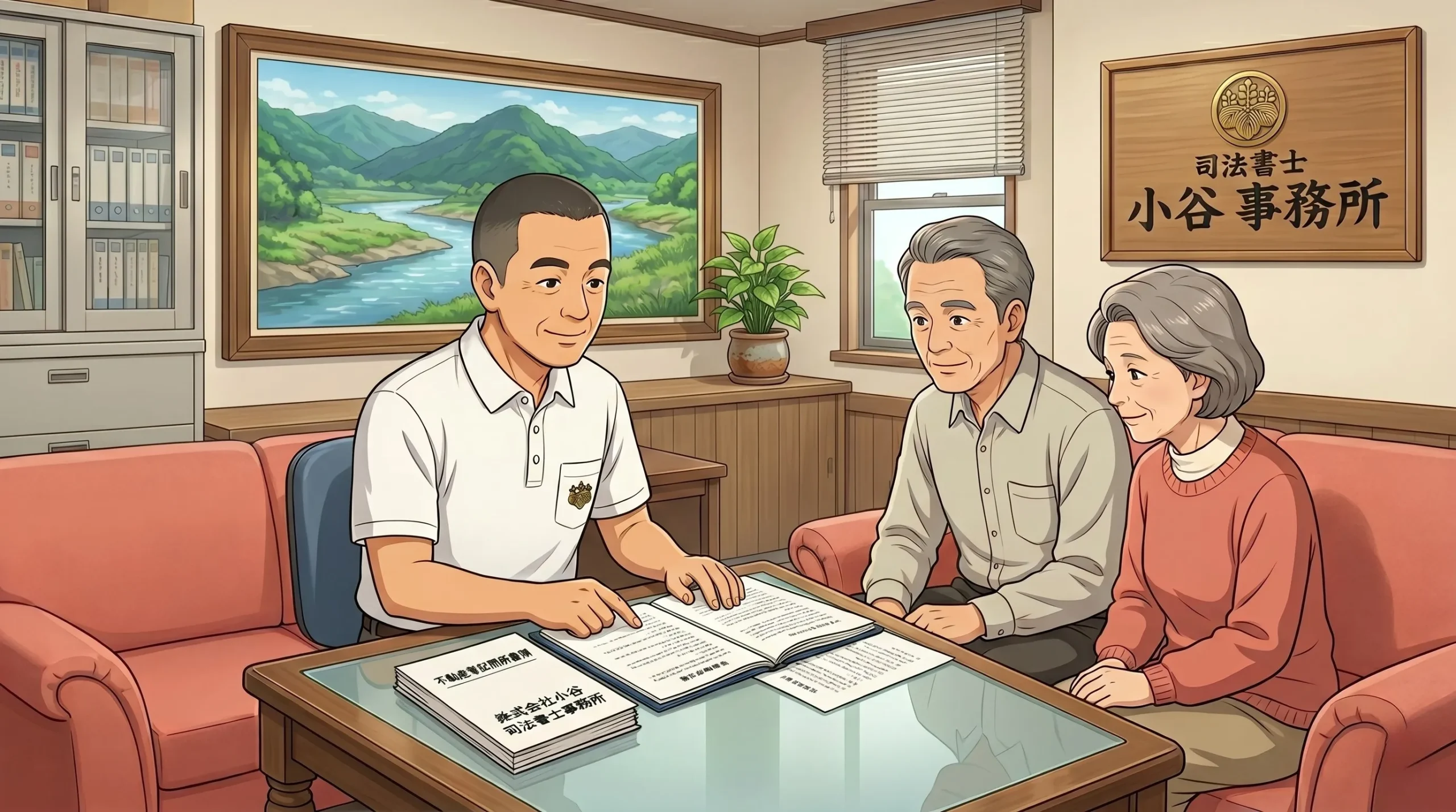 住所変更登記について夫婦に説明する小谷司法書士