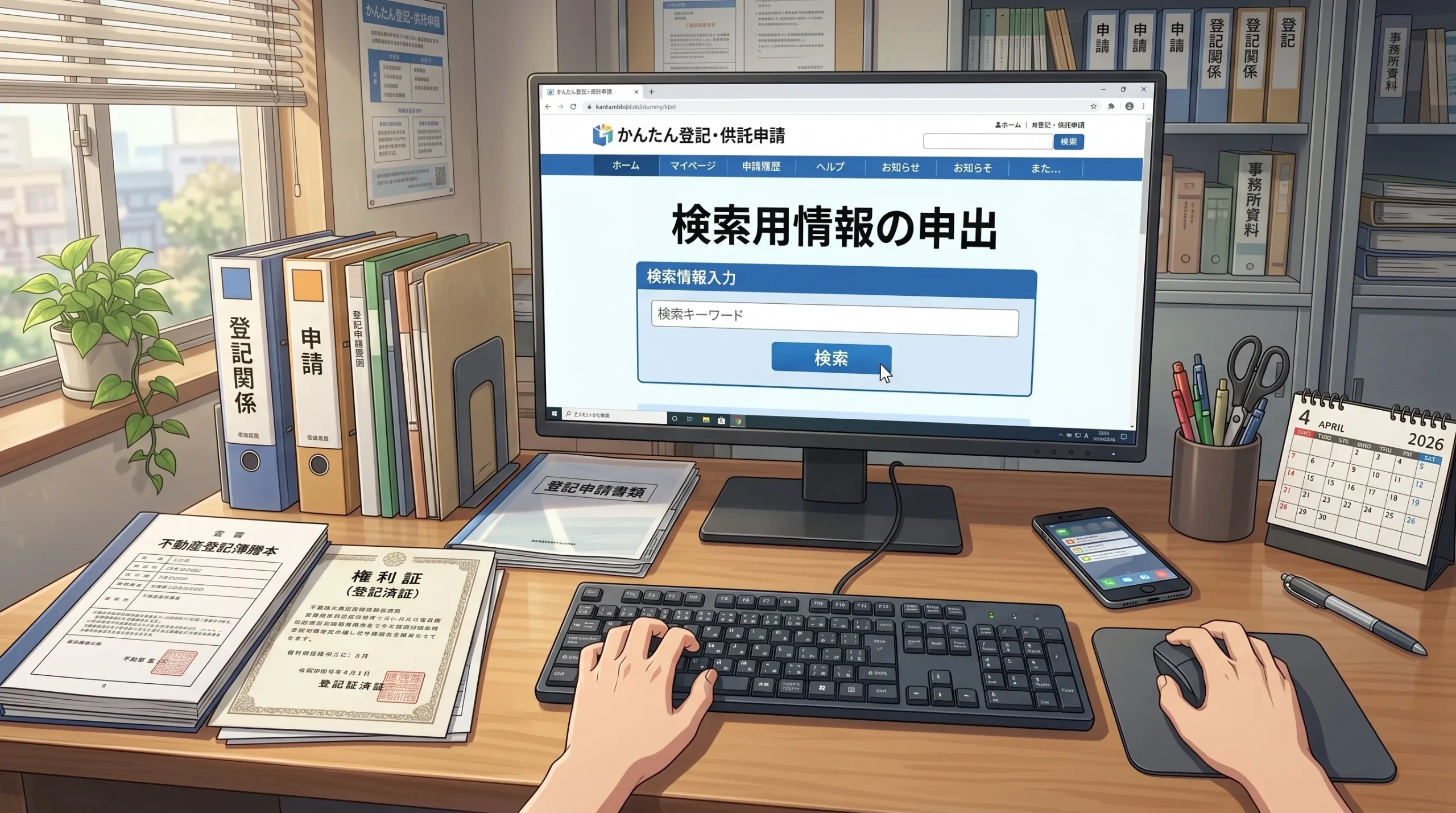 令和7年4月21日以降、相続登記など新たに所有権の登記名義人となる登記を申請する際には、申請書類に検索用情報を併せて記載して申し出ることが必要となっています。